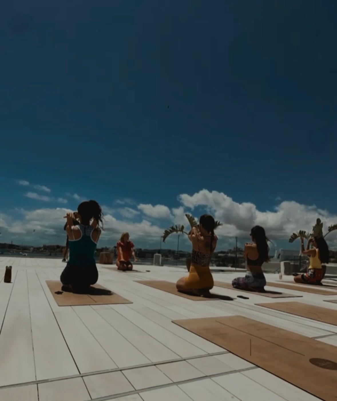 Breathe in the fresh sea air as you flow through gentle postures and meditation on the stunning rooftop overlooking the picturesque Talamanca Ibiza Bay.